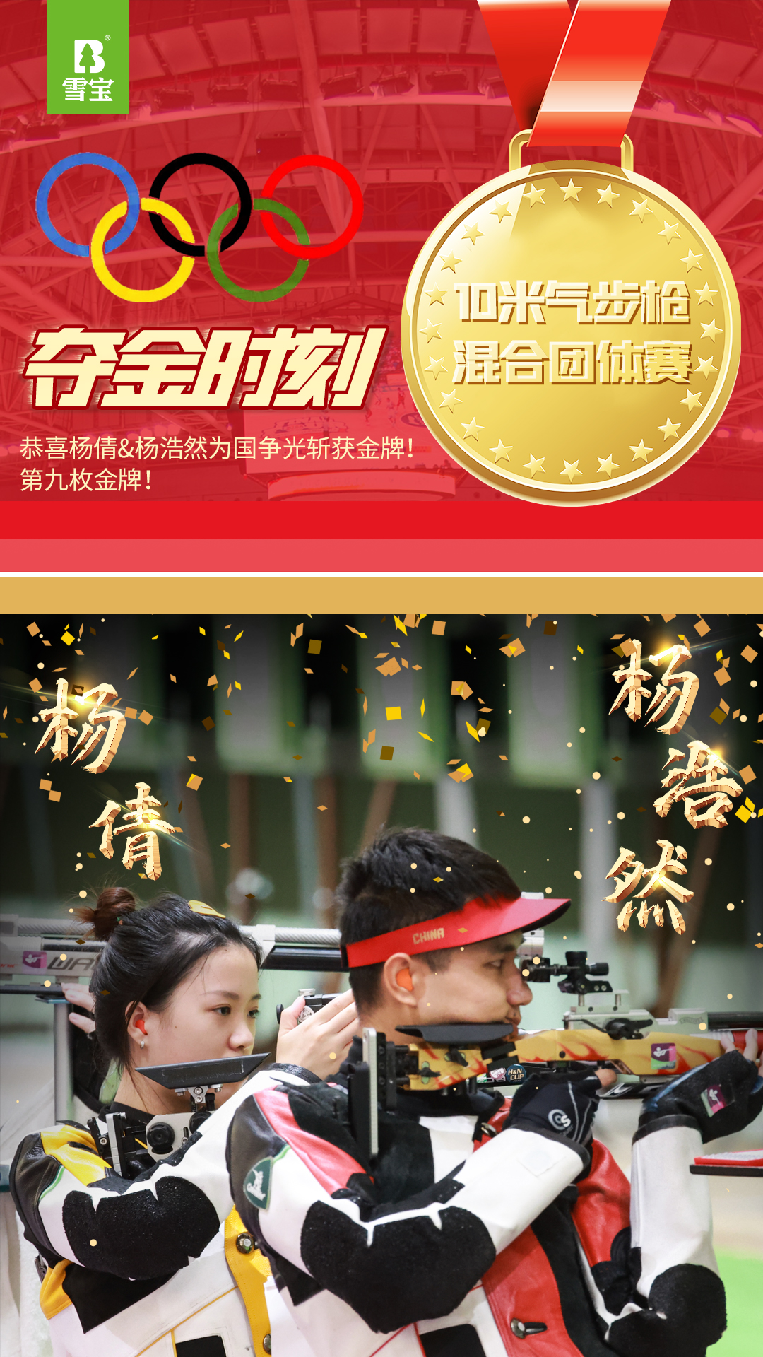 - 祝賀楊倩和楊皓然獲得2020奧運會10米氣步槍混合團體冠軍