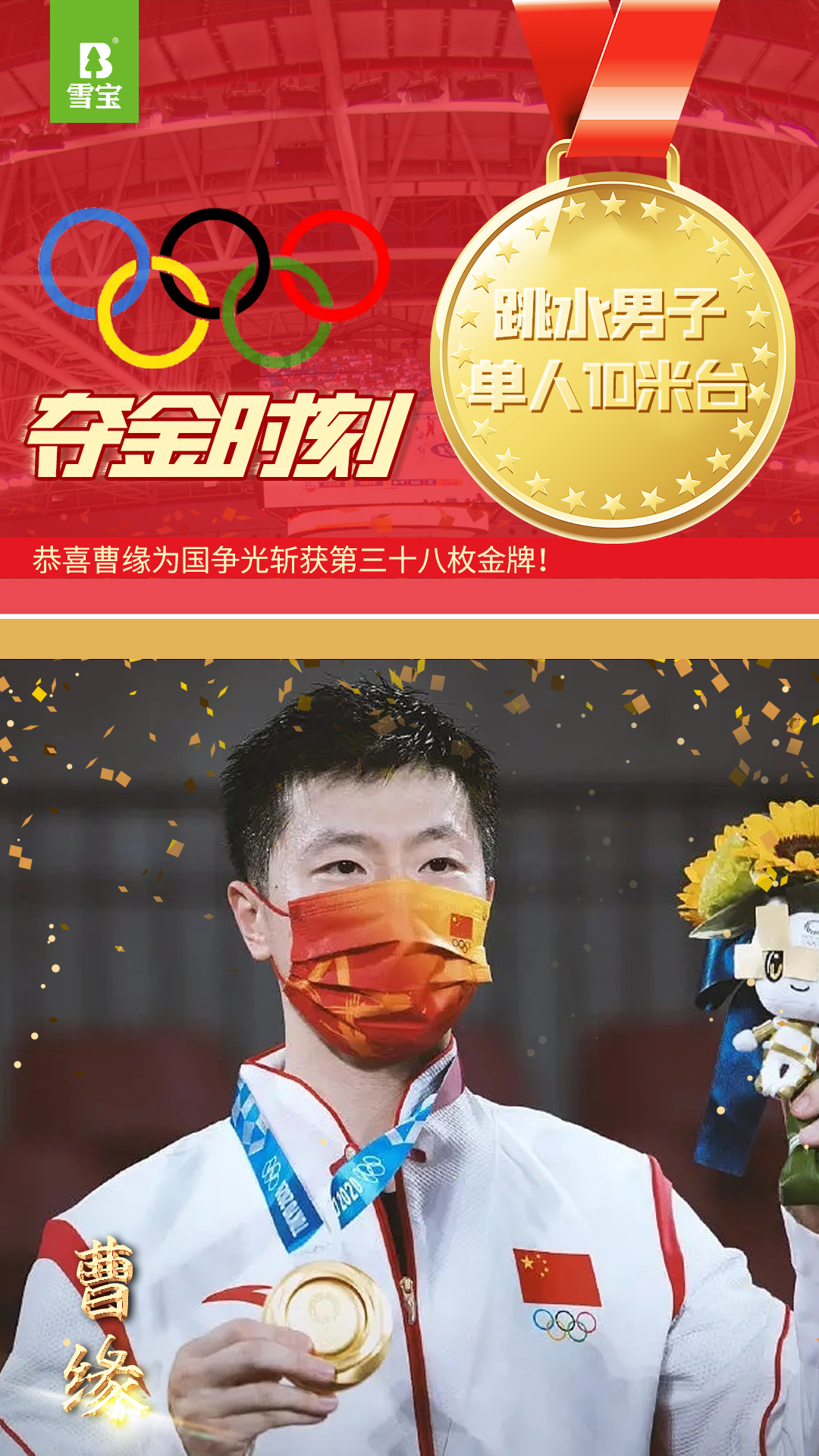 - 曹緣獲得東京奧運會男子10米跳臺跳水金牌