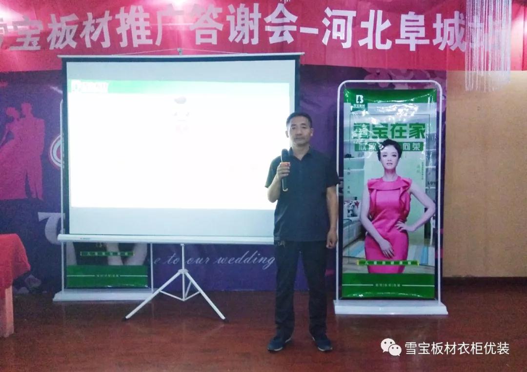 2019年5月28日,雪寶品牌華北區—河北阜城站雪寶板材專賣店誠邀了阜城地區近100多位合作伙伴共聚一堂,活動現場人氣爆滿,共同分享雪寶品牌產品及服務,現場精彩不斷。從今年4月份開始截止至今,河北省已經連續召開五次客戶答謝會,同時也是雪寶品牌華北區—河北省2019年上半年合作伙伴答謝會其中重要一站,是繼此前在河北定州、晉州、清苑、故城等地連續開展的。