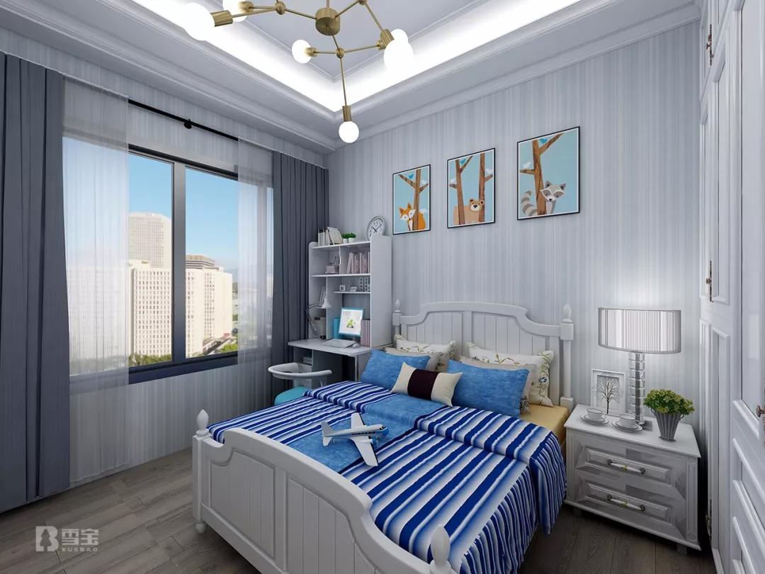 男孩生性好動愛玩且活力十足,在整個男孩房空間,以藍色系為主色調(diào),旨為給孩子營造一個相對安靜和舒適的獨立區(qū)域,讓孩子靜享這一方寧靜和煦專屬空間。萌物墻畫裝飾,可愛氣息油然而生。燈飾造型巧妙搭配,極具現(xiàn)代簡歐優(yōu)雅小情調(diào)。