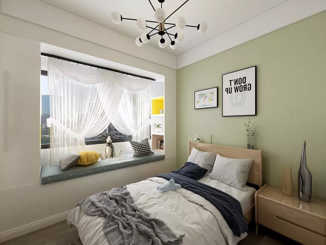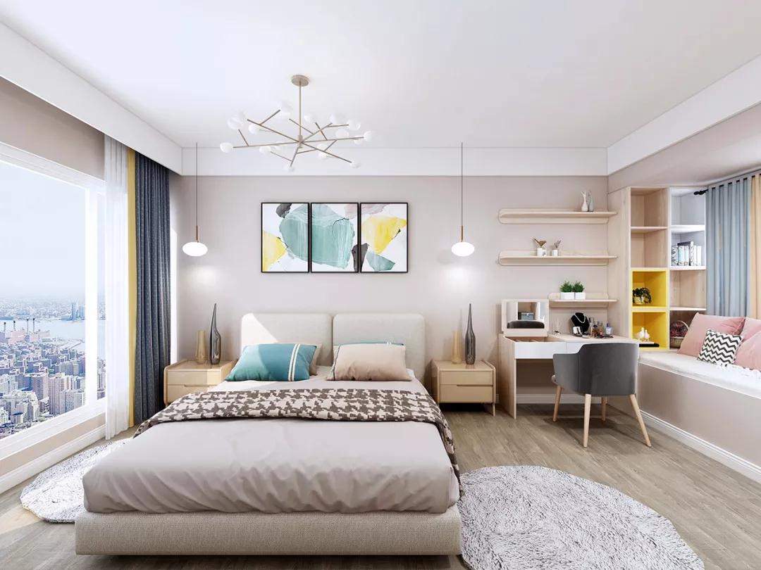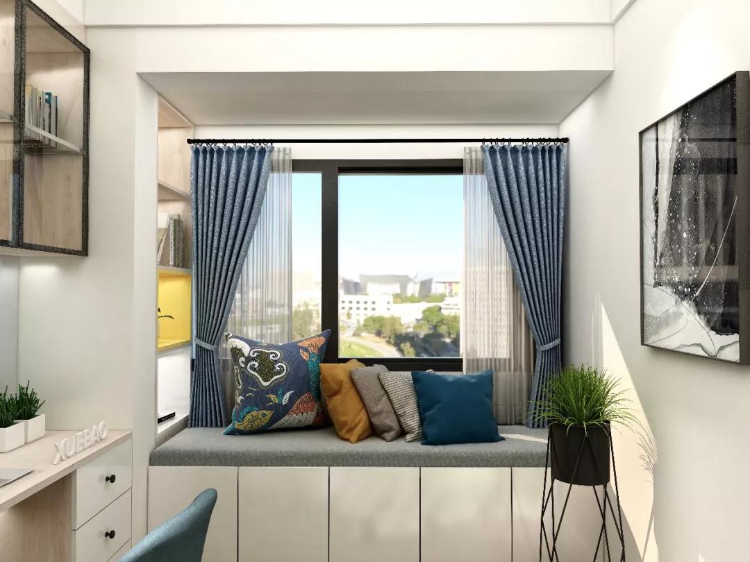 北歐風格的設計貌似不經意的搭配之下,一切有如渾然天成般光彩奪目。大衣柜滿墻到頂設計,儲物收納綽綽有余。飄窗臺改造,多一處閑情雅致小天地,陽光灑入、微風拂來一片歲月靜好。梳妝臺桌面巧妙設計梳妝格,每一天都擁有美美的好心情。