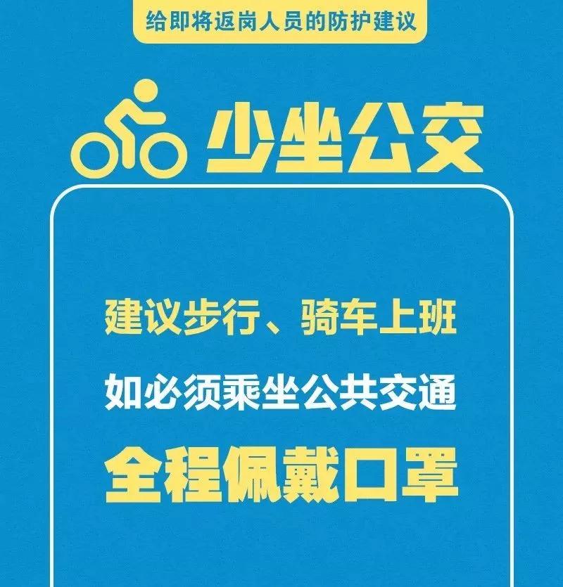 少乘坐公共交通!建議步行、騎車上班,如必須乘坐公共交通務(wù)必全程佩戴口罩。