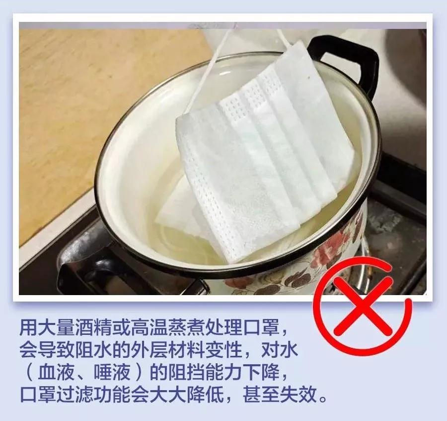 口罩外層也有類似的阻水效果,如果用大量酒精或高溫蒸煮處理口罩,會導致外層材料變性,對水(血液、唾液)的阻擋能力下降,口罩的過濾功能會大大降低,甚至失效。其實,只要不是去過人員密集的公共場所(如醫院),可以循環利用的口罩不必消毒。