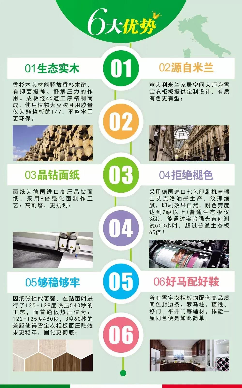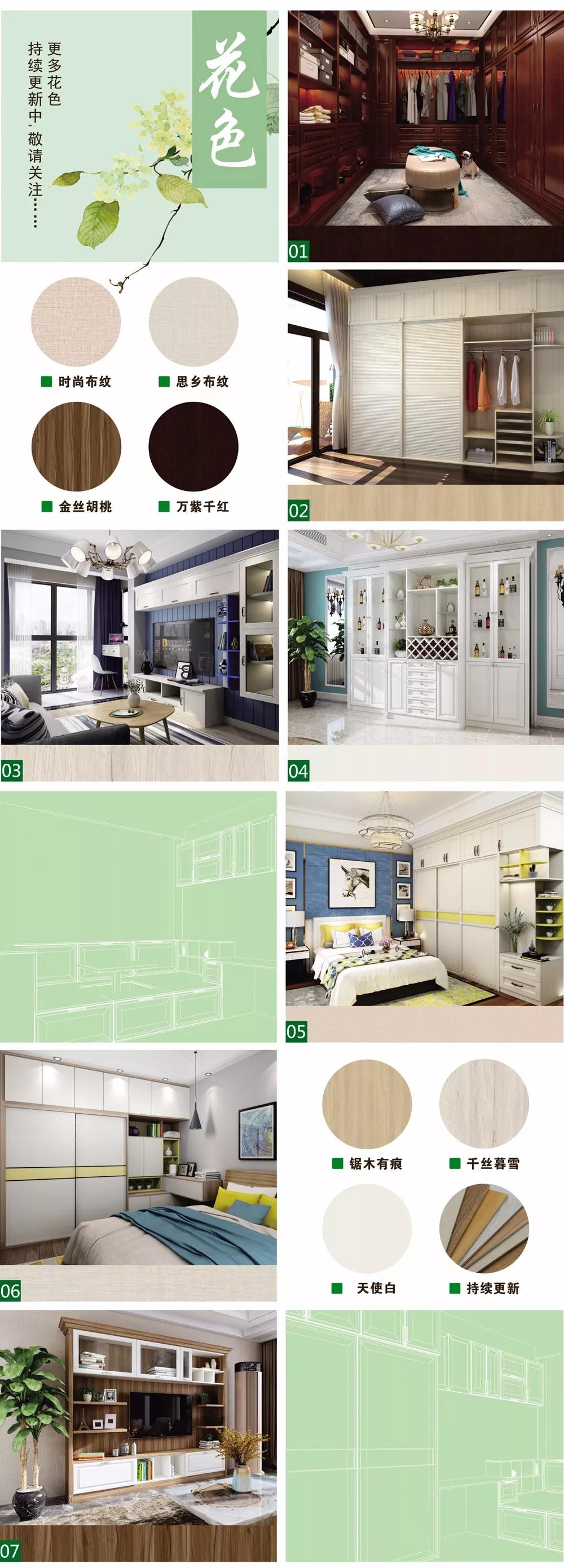 雪寶衣柜板經(jīng)46道工序精制而成,源于意大利米蘭設(shè)計理念,使用德國進口高壓晶鉆面紙,采用8倍強化面制作工藝:高耐磨,更抗劃!面紙印刷效果自然、紋理細膩,耐色勞度達到7級以上(普通生態(tài)板僅3級),貼面時進行了125-128度熱壓540秒的工藝,而普通板熱壓值為:122-125度480秒,3度60秒的差距使得雪寶衣柜板面壓貼效果更穩(wěn)牢,固化更徹底;同時,所有雪寶衣柜板均配套高品質(zhì)同色封邊條、羅馬柱、頂線、移門、平開門等輔材,體驗一屋同色便是如此簡單。