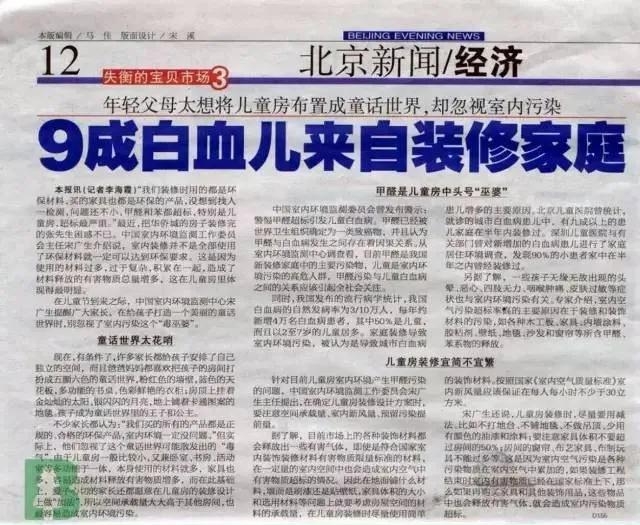 中國室內環境監測委員會也曾發布警示:警惕甲醛超標引發兒童白血病。甲醛已經被世界衛生組織確定為一類致癌物,并且認為甲醛與白血病發生之間存在著因果關系。從室內環境監測中心調查看,目前甲醛是我國新裝修環境中的主要污染物,兒童是室內環境污染的高危人群,甲醛污染與兒童白血病之間的關系應該引起全社會關注。