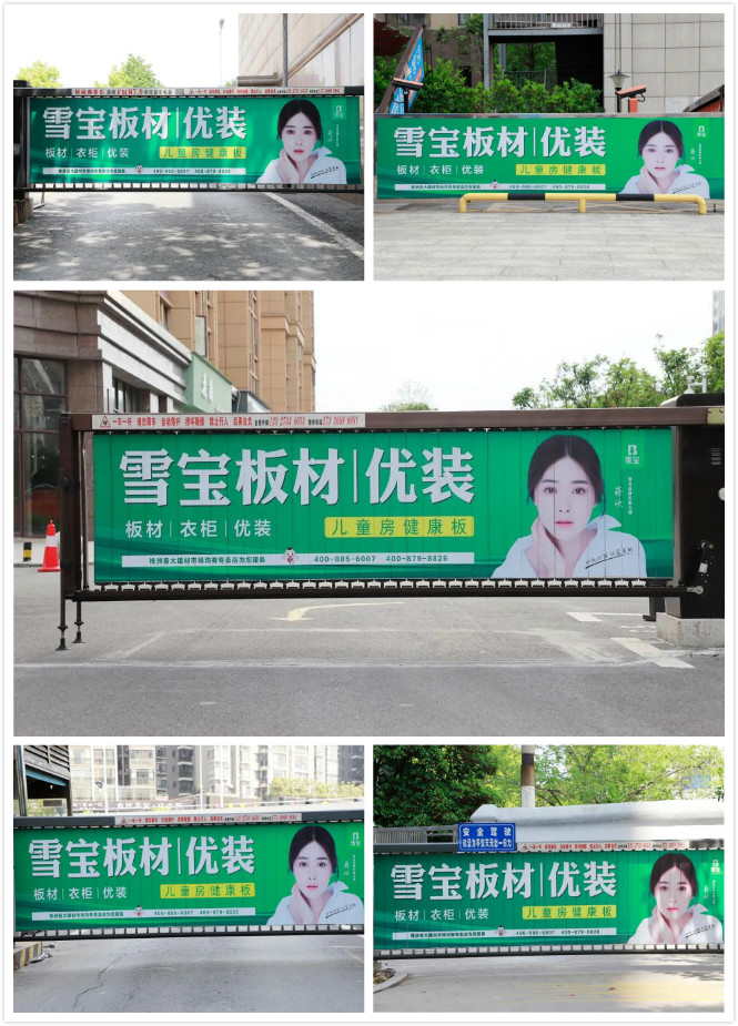 小區廣告雪寶走進千萬家:小區出入口道閘廣告覆蓋全城多個中高端社區,與廣大市民零距離接觸,真正把雪寶高環保高品質的綠色裝飾建材產品帶進千家萬戶中去。雪寶系列優質產品全方位為家居環保裝修保駕護航,歡迎蒞臨各大建材市場專賣店進行選購!