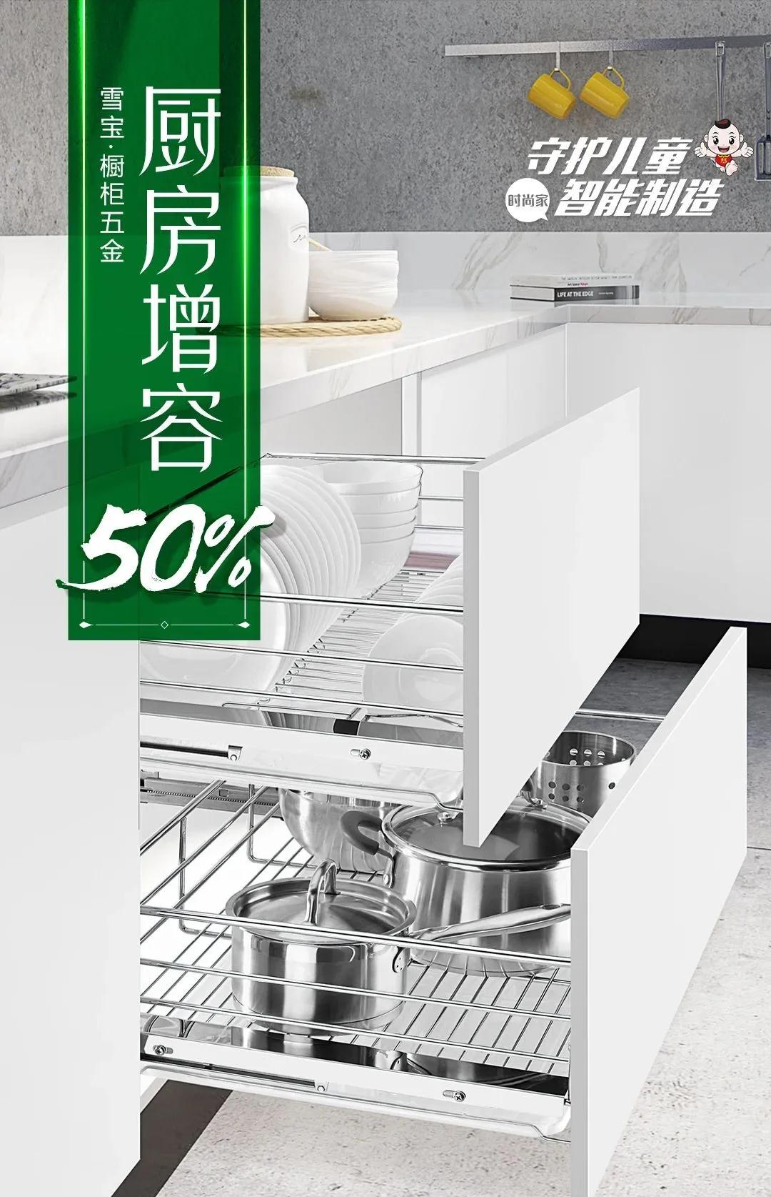廚房的使用率算是非常頻繁的,許多有廚房裝修遺憾的業(yè)主,五金件沒選好是一部分原因,另外就是使用過程中收納糟心,大大降低了廚房的使用壽命。雪寶五金本次最新推出的幾款櫥柜五金產(chǎn)品,就是帶著走心的設計需求,為每一位精致生活的您帶來廚房增容神器,輕輕松松搞定廚房收納,讓廚房空間增容50%。