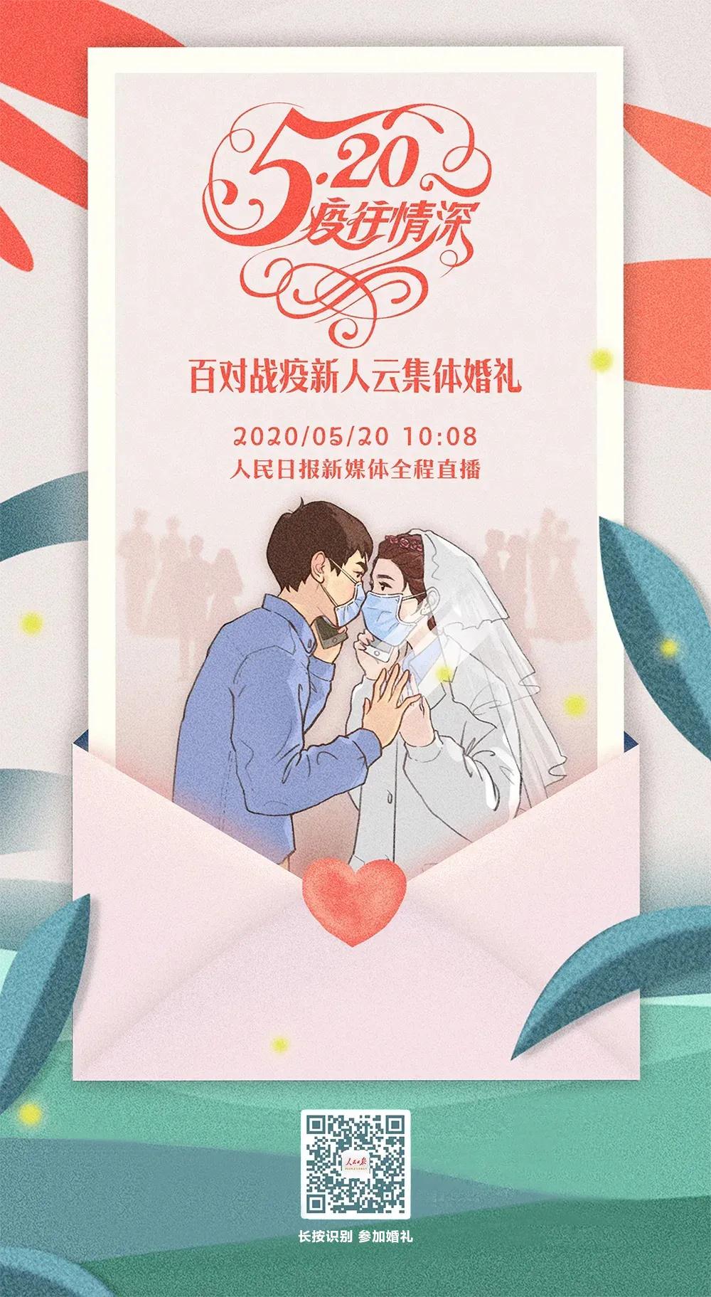 “疫”往情深,共同見證2020年05月20日10:08,在這個“三倍愛你”的特殊日子,人民日報新媒體攜豪華嘉賓陣容為100對戰(zhàn)疫英雄們舉辦一場最甜蜜的云婚禮,由中國工程院院士/共和國勛章獲得者黃旭華、中國工程院院士李蘭娟,共同為新人證婚,李宇春傾情演繹音樂短片,李云迪將彈奏婚禮進行曲,各界名人組成云伴郎伴娘團為新人送上祝福。