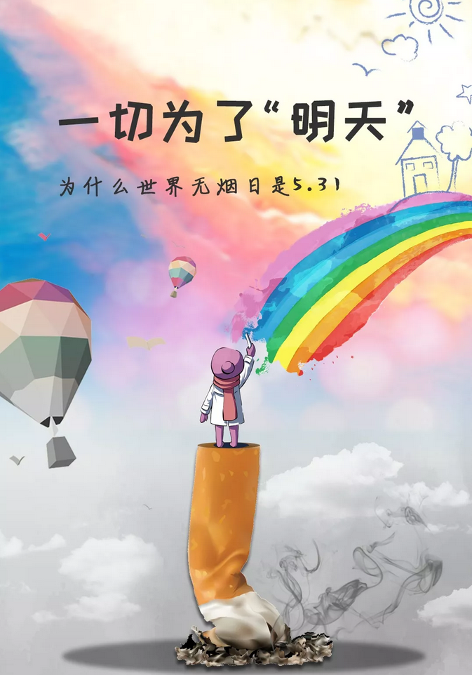 “世界無煙日(World No Tobacco Day),是世界衛(wèi)生組織在1987年創(chuàng)立的,一開始的“世界無煙日”是4月7日,但從1989年開始,世界無煙日改為每年的5月31日,正是因為第二天是國際兒童節(jié),希望下一代免受煙草危害。一個小小的改動,只為了提醒我們,一切為了“明天”,別讓下一代成為“煙二代”。