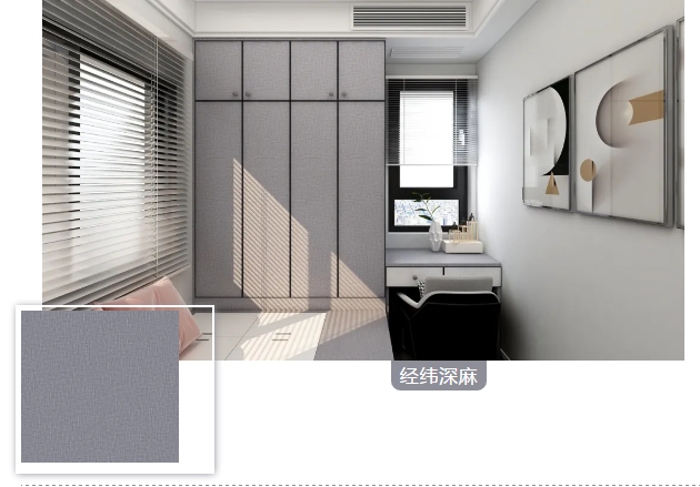 細(xì)膩的布紋宛若江南春景里的煙雨,潤物無聲,優(yōu)雅的灰色調(diào)朦朧寫意,只待雨霽空明,盡顯快意瀟灑。適宜搭配極簡、簡單的家居格調(diào)。