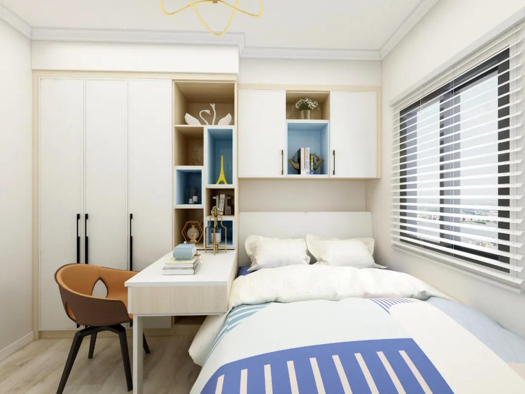 另外,書桌、柜體和床頭整體相連的設計,能合理規劃布局。