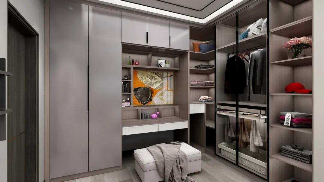 大部分人認為衣帽間需要占很大的空間,其實這個想法是錯誤的。按柜深60cm來看,加上舒適寬度的過道,最起碼也需要60cm,因此,衣帽間寬度至少120cm。如果是2.5米長的衣帽間,那么3㎡的空間就足夠了。