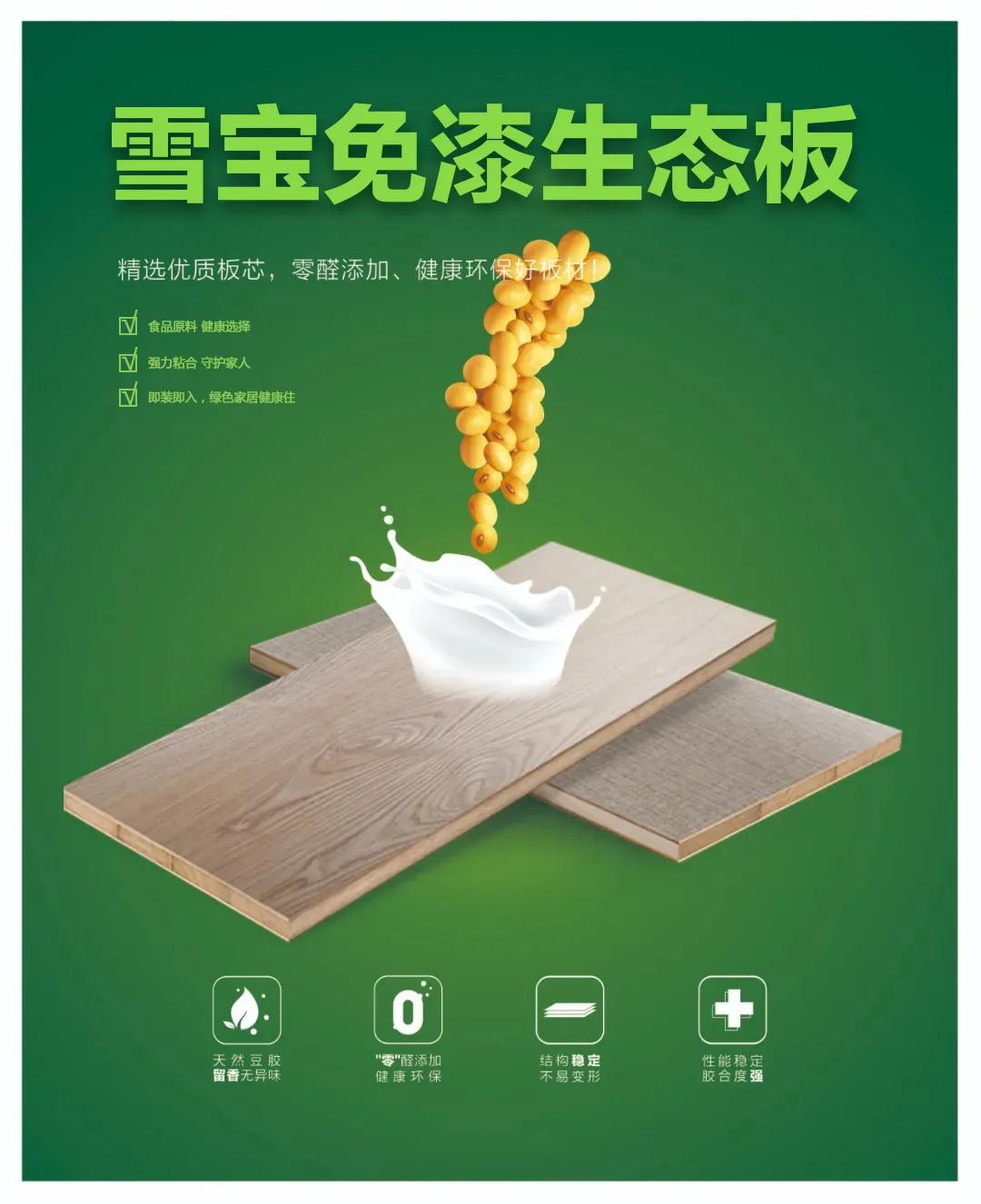 市場上大多數環保板材采用的依然是化學膠粘劑,在裝修中不可避免的釋放甲醛、苯酚等毒害人體健康的化學物質。雪寶板材精選優質原材,萃取植物大豆膠加工制成,零醛添加、健康環保,給您的健康家居提供有力保障。