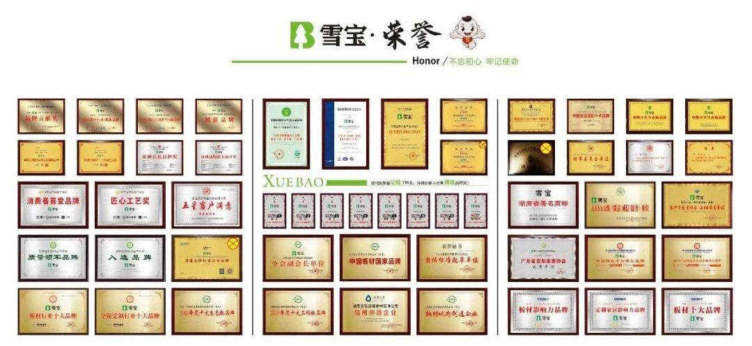 集“國字號”榮譽中國板材國家品牌、國家綠色建材品牌計劃【質量領軍品牌】、中國家居建材行業領軍品牌、定制家居領軍品牌等眾多榮譽于一身的雪寶,質量和環保屬性早已刻入品牌的基因中并傳承。