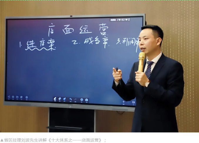 省區(qū)經(jīng)理劉波先生對(duì)此次導(dǎo)購(gòu)特訓(xùn)營(yíng)進(jìn)行了開(kāi)營(yíng)致辭,強(qiáng)調(diào)了此次培訓(xùn)的意義,敦促全體學(xué)員們要時(shí)刻保持學(xué)習(xí)的熱忱,謹(jǐn)記提升自我的重要性。