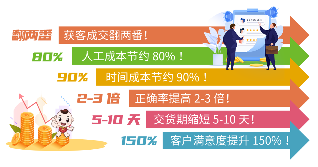 提供留客助銷、智能設計、效果圖免拆單對接生產、數字化運營管理等全套解決方案。同時,砍掉多余成本、降低人工依賴、提升生產效能,實現定制前后端全流程高效轉換,是當之無愧的全屋定制運營神器。輕松實現: