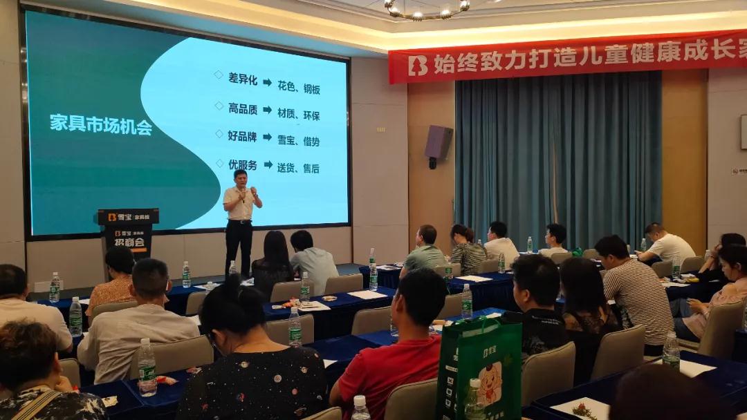 雪寶家具板事業部張經理現場授課《家具板的發展趨勢與機遇》、《雪寶家具板介紹》,通過結合行業現狀及發展趨勢進行延伸,深入剖析傳統板材商、家具廠的痛點需求,同時,圍繞雪寶品牌獨特的差異化優勢以及板材、封邊、門配、五金、培訓、軟件、營銷、運營8大系統展開賦能,真正幫助每一位經銷商朋友掌握市場營銷致勝方法。