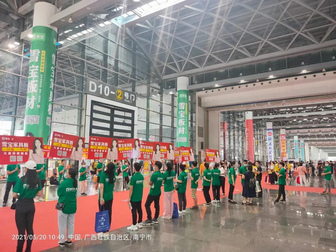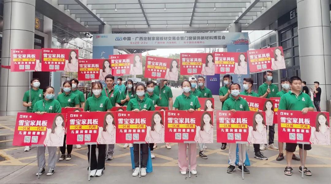 在本次2021廣西·南寧建博會會場,雪寶廣告位優勢明顯、效果顯著。同時,穿著“綠馬甲”的雪寶家人穿梭展會現場儼然成為展會上一道亮麗的風景線,在本次展會上,成績可觀。收獲諸多雪寶家具板意向加盟商,對雪寶品牌也紛紛豎起大拇指