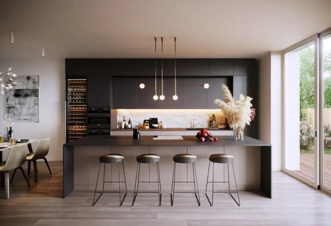 餐廚一體是將二者功能融合在一起,形成了房屋獨特的空間結(jié)構(gòu),體現(xiàn)了現(xiàn)代房屋空間的多功能化。