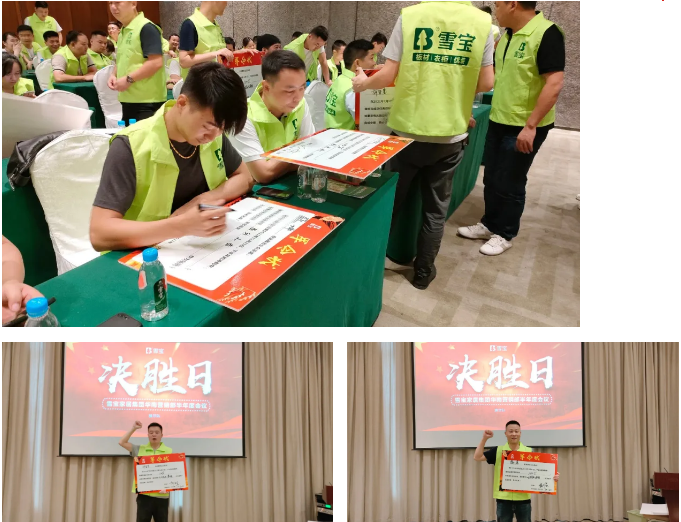 牢記目標在心,細分目標進程,付出不亞于任何人的努力以務必達成使命。活動現場,每一位家人們上臺進行分享和總結并簽署軍令狀。