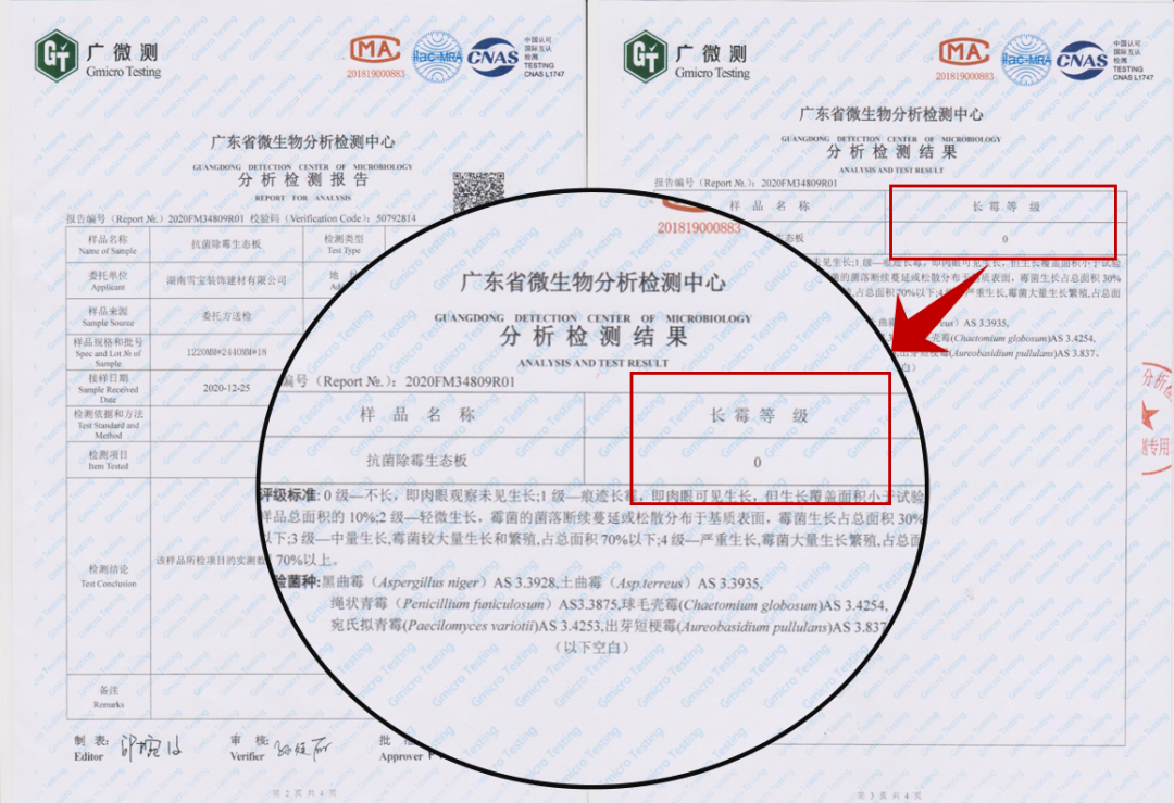 以優質板芯為基材,添加防霉層,可達到0級防霉效果,是防霉等級的最高等級。