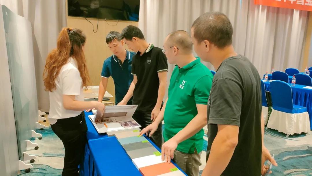 現場展示的雪寶地板、新品柜門板等系列產品,受到所有經銷商的關注和青睞,紛紛表示將引入門店銷售推廣;