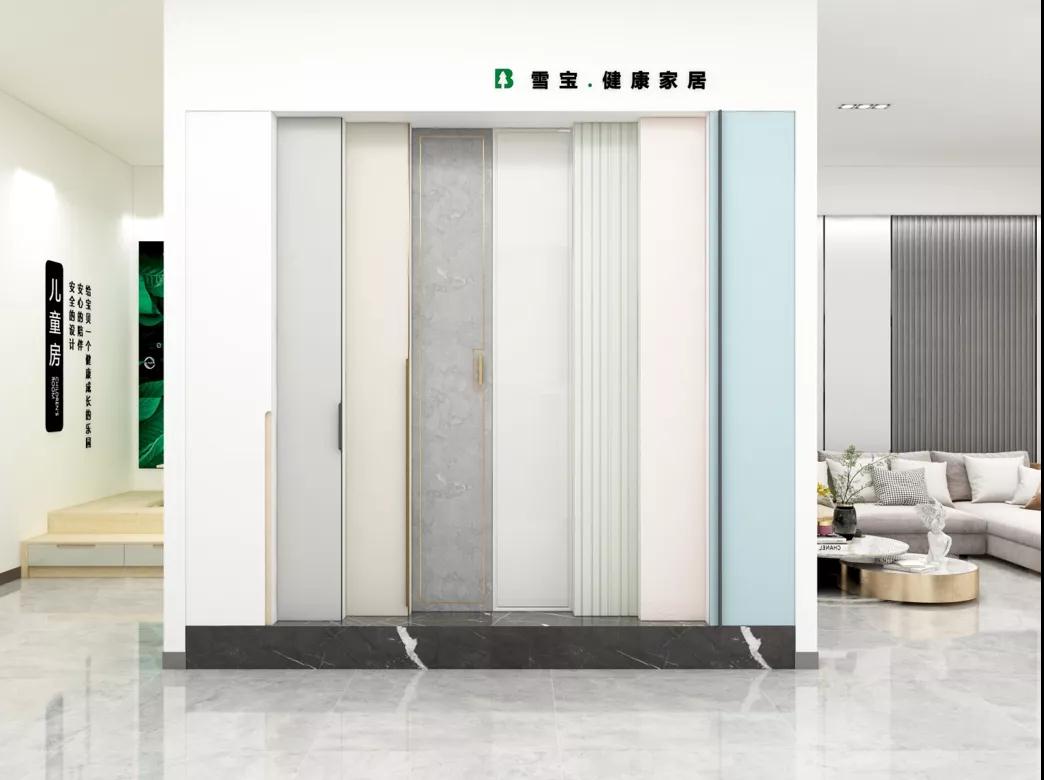 此外,雪寶PET門板環保等級基材達到F4星級,PET飾面膜零甲醛釋放,真正健康安全的產品!