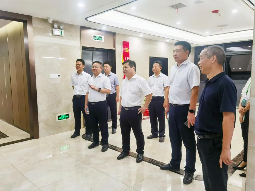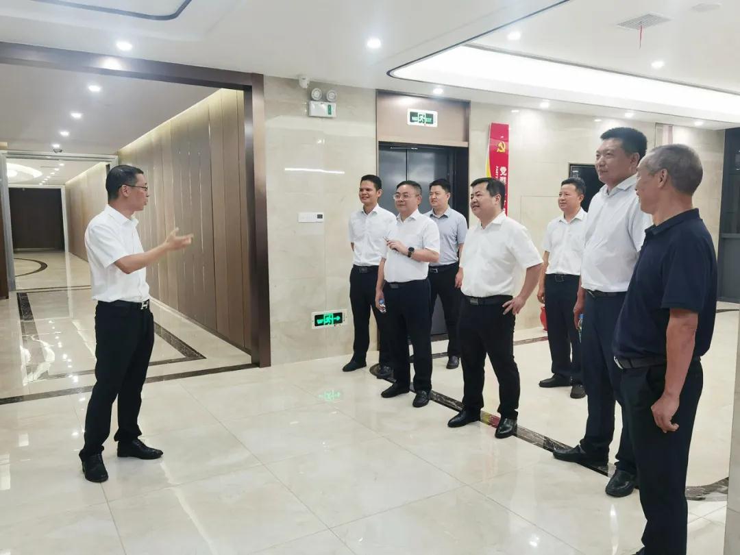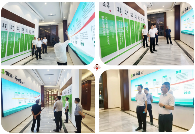 在參觀至6樓雪寶黨群服務中心,處處可見的黨建標語標識讓農行一行領導無不稱贊,并駐足聽取李振董事長就企業為什么要做黨建以及堅定不移踐行黨建的根本原因等。