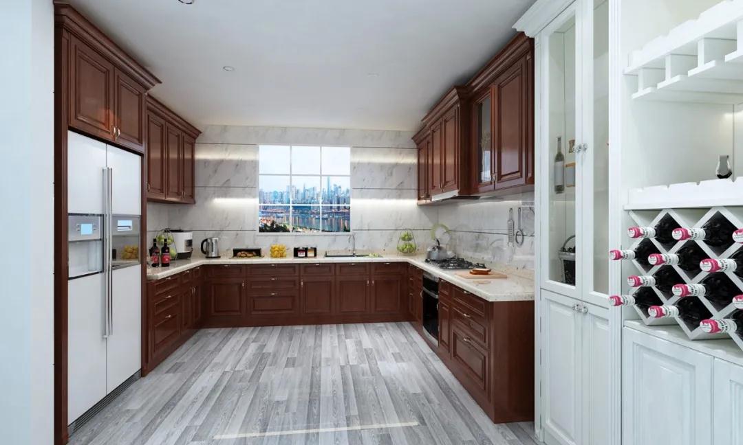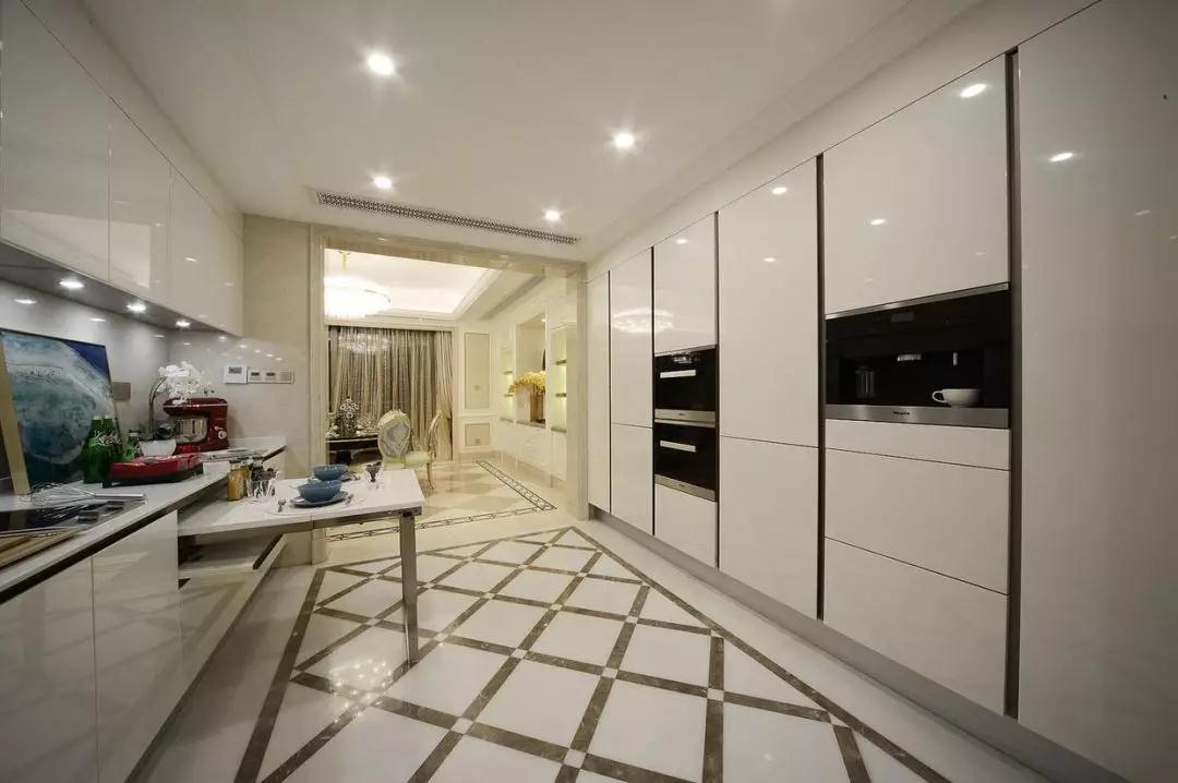 “U型”廚房的基本功能較為好用,操作流程合理,可以容納多人操作。U型廚房布局設計的櫥柜配備齊全,能充分利用空間,擴大操作面積。