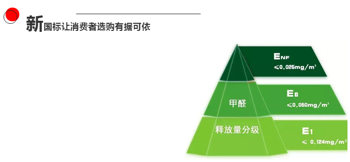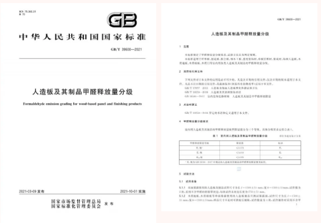 由全國人造板標準化技術委員會歸口管理的GB/T 39600-2021《人造板及其制品甲醛釋放量分級》和GB/T 39598-2021《基于極限甲醛量的人造板室內承載限量指南》正式發布。新國標于2021年10月1日正式實施,E0級正式納入分級標準,獲得國家認可,ENF級成為全球最高環保等級。