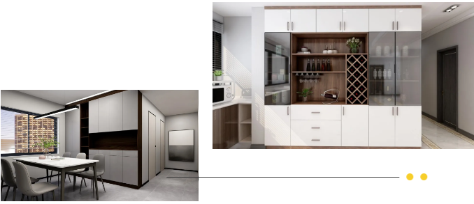 餐廳是家中最治愈人心的地方,當(dāng)烹調(diào)完畢的各色佳肴被端上桌面,一家人齊聚餐桌旁,美食伴隨美景,心中的幸福感油然而生。定制一款中意的餐邊柜,節(jié)省空間的同時(shí),與全屋的整體風(fēng)格也更融合!