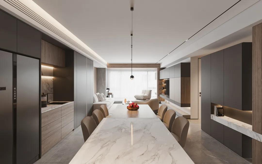 超高柜門設計一門到頂,天生高"柜"。對于超高門柜情有獨鐘的朋友,通常喜歡其干凈整潔的氣質,一門到頂,很適合追求簡約感的朋友。