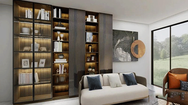 搭配建議:根據書房戶型,可以制作整體書柜和組合書柜,整體超高門書柜的大氣,組合式超高門書柜易騰出位置給書桌。