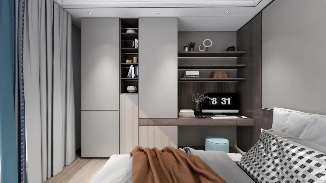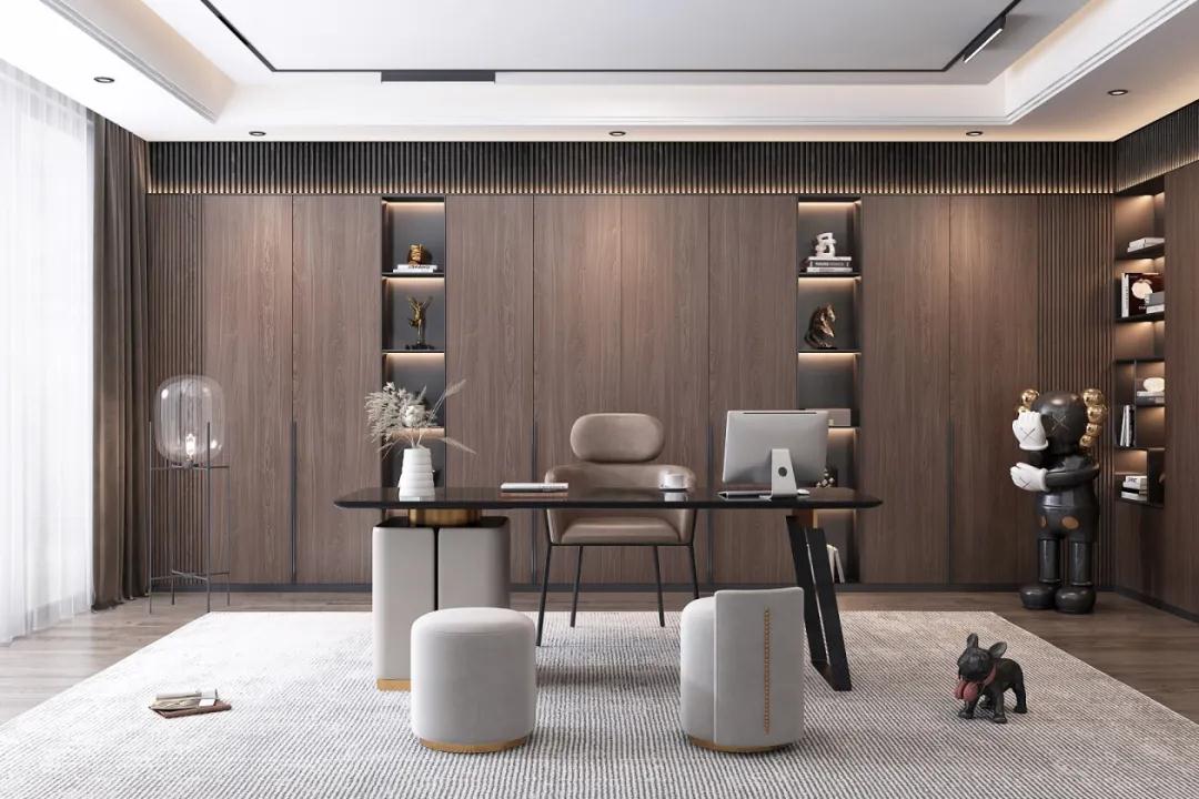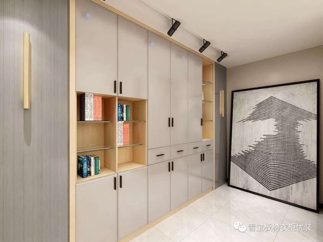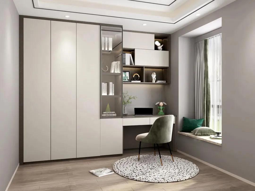 書房的使用頻率不如客餐廳等空間高,所以易清潔、防落灰是第一要務。超高門由于是無縫銜接,所以落灰更少,打掃起來更快捷方便。收納遵循藏八露二的原則,就算沒有時間清理,也能讓空間一直保持整潔不雜亂。