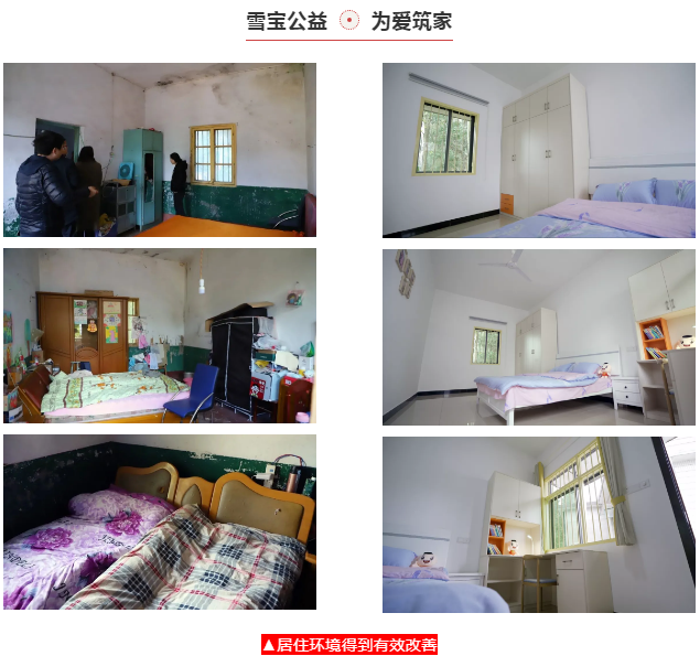 經(jīng)對比走訪家庭的實際情況并商議決策,以及慎重考慮房間采光通風(fēng)等多方面原因,最終選擇以下房間進(jìn)行“團(tuán)團(tuán)希望小屋”改造,其中援建裝修材料購買、工人落實、施工安裝、衛(wèi)生清掃等所有工序均由雪寶全權(quán)負(fù)責(zé)和把控。