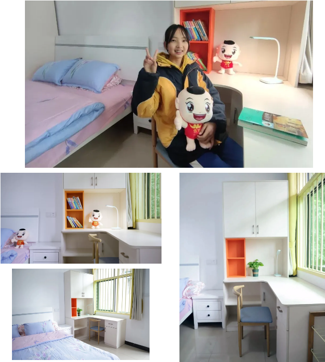經(jīng)過徹底的全面翻新裝修后,房間墻面煥然一新,地磚鋪設(shè)整潔通透,全新的實木床旁立著由使用“雪寶板材兒童房健康板”打造而成的大衣柜和書桌柜,陽光透過米棕色的窗簾照亮房間,溫暖明亮,整個小屋發(fā)生翻天覆地的變化。于團(tuán)團(tuán)希望小屋改造的家庭孩子悅悅而言,她開心的坐在新書桌前笑了。