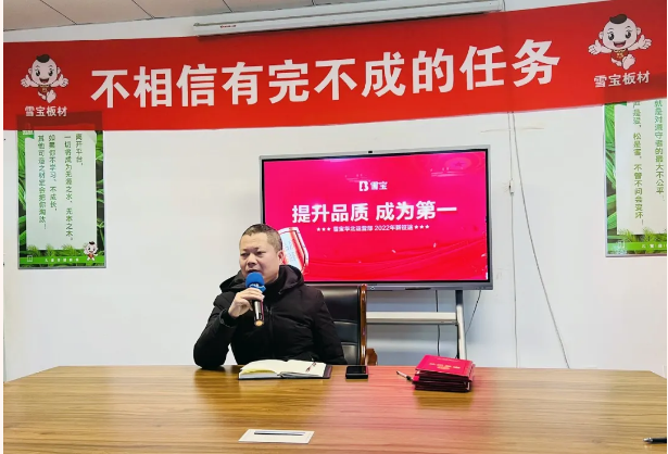 活動伊始,雪寶華北生態(tài)板營銷副總監(jiān)陳家義先生做開春第一課“狠抓實干·雪寶華北2022年整體戰(zhàn)略規(guī)劃”致詞。指出,未來市場競爭會異常激烈,環(huán)境會愈發(fā)復(fù)雜,希望全體雪寶人上下一心,以戰(zhàn)無不勝攻無不克的鐵軍精神給雪寶華北區(qū)域“2022新目標(biāo)新征程”的戰(zhàn)斗譜寫新的輝煌篇章。