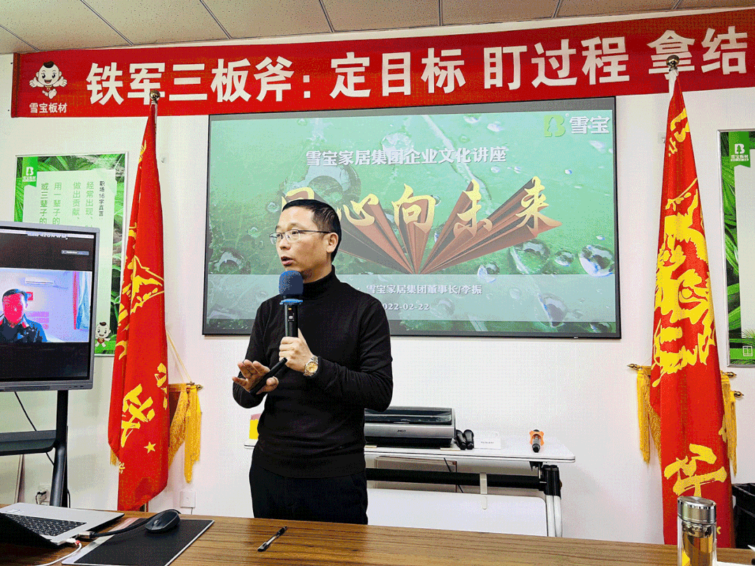 勠力同心迎開(kāi)局,凝心聚力促發(fā)展!會(huì)議伊始,雪寶家居集團(tuán)董事長(zhǎng)李振先生傾情講演新年第一課《同心向未來(lái)》,通過(guò)切身經(jīng)歷以及品牌創(chuàng)建、企業(yè)發(fā)展的辛酸歷程,結(jié)合企業(yè)文化內(nèi)容展開(kāi)講解,讓每一位家人都深刻明白雪寶企業(yè)文化中每一條內(nèi)容的精髓和真諦。