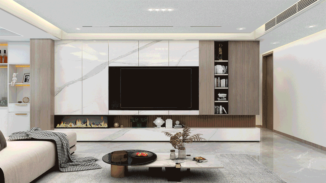 柜體開(kāi)放區(qū)域,可放置工藝擺件,增添客廳藝術(shù)氛圍,也可收納日常小物,方便拿取。
