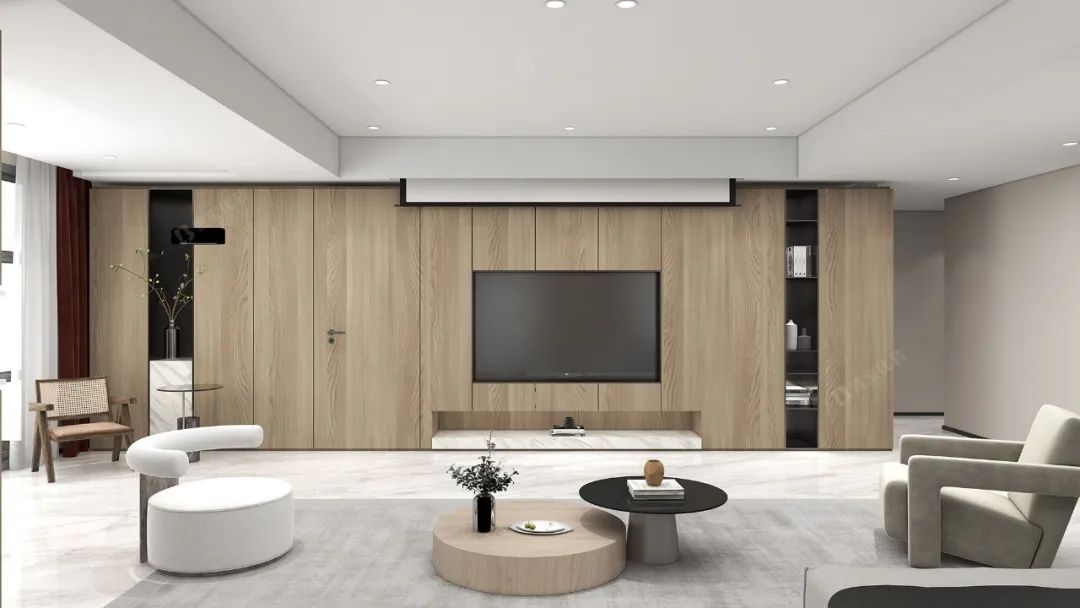 整墻電視柜,墻柜一體,外表簡(jiǎn)約時(shí)尚,自然素雅,無(wú)拉手設(shè)計(jì)讓整個(gè)柜體更為利落清爽。