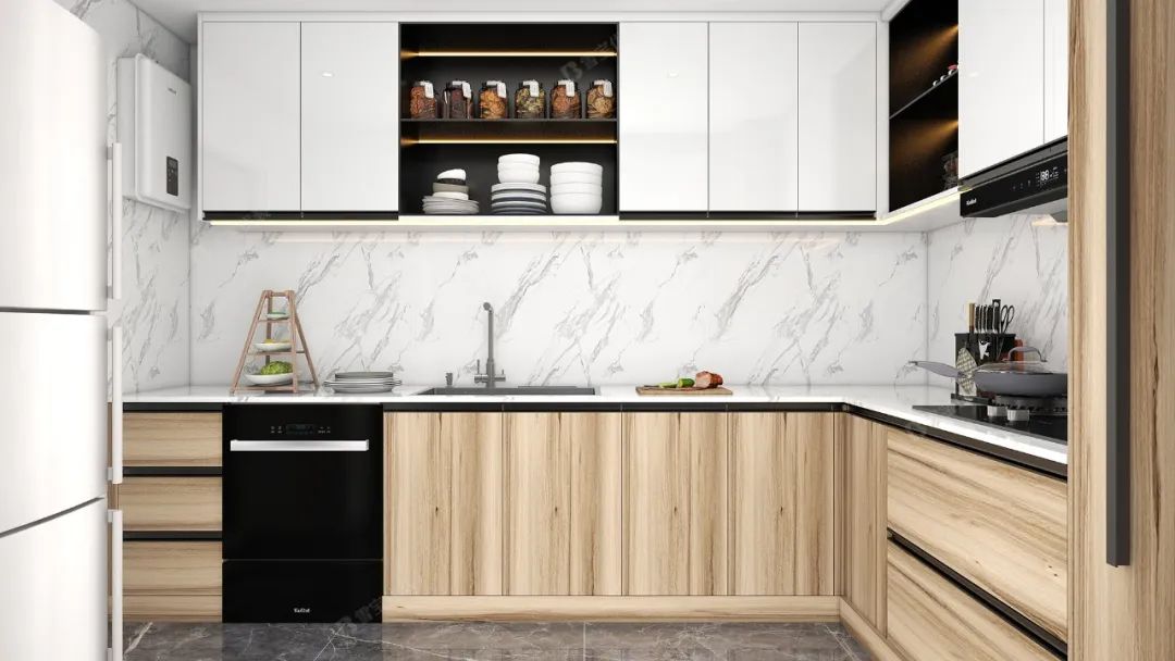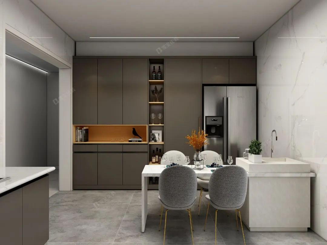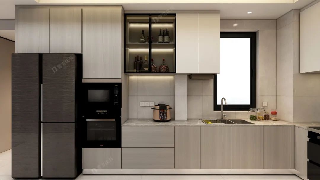 優(yōu)質(zhì)環(huán)保的材質(zhì)、柔和溫馨的燈光效果搭配簡(jiǎn)單純粹的色彩,將廚房打造得精致美好更舒適整潔。