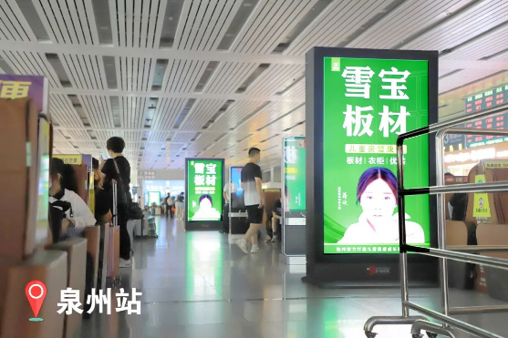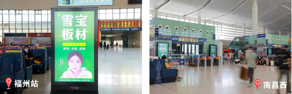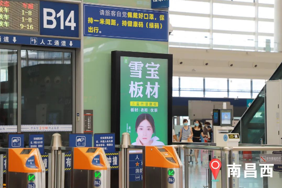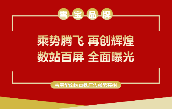 既是彰顯品牌形象,更是占領品牌實力制高點!雪寶品牌高鐵廣告在廣州南、福州、武漢、長沙、長沙南、南昌西、泉州、漳州、莆田、柳州、郴州、郴州西、衡陽東、株洲西、岳陽東、東安東、贛州西、上饒、鷹潭北、新余北、宜春、撫州、景德鎮北、吉安西、荊州等大型高鐵和鐵路樞紐站,通過站內大量廣告屏,全面覆蓋各站點重要客流端口,讓乘客感受雪寶品牌的實力與魅力!