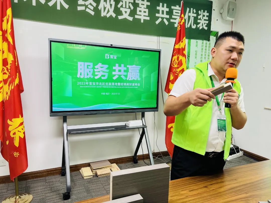 會議伊始,雪寶華北營銷總監陳總致詞,并表示“家居建材市場自2018年以來發生了巨大變化,消費者的需求日益多元化。雪寶順勢而為,優裝模式應運而生,盈利模式日益完善,銷量業績逐年攀升,種種跡象都表明雪寶優裝模式成功闖出了一條新路子。”