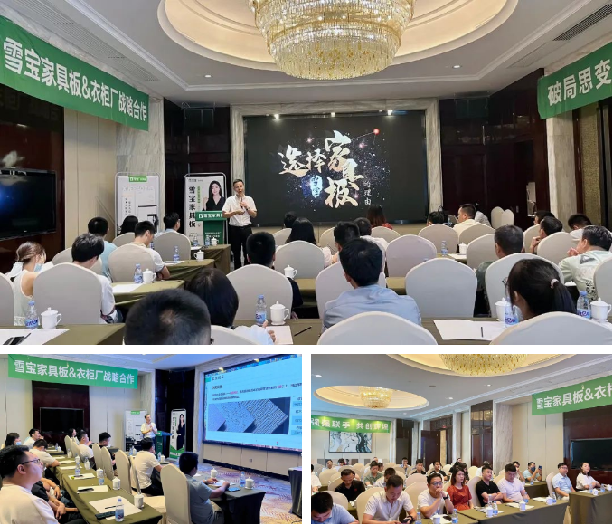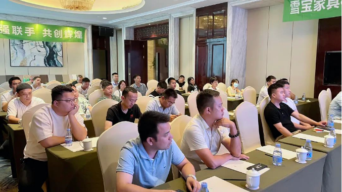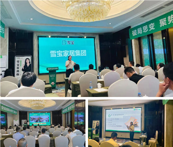 好的產品是成功的一半,而好的產品必須是解決客戶最實際的需求以及對產品的五星好評。雪寶家具板事業部大區經理劉波先生現場介紹雪寶家具板以及選擇雪寶家具板的理由,從產品研發、生產工藝、環保標準、花色體系、營銷設計、產品質檢,以及品牌強大售后服務等多維度展開系統、專業的介紹,幫助各位合作伙伴清晰了解雪寶家具板的核心差異化優勢。