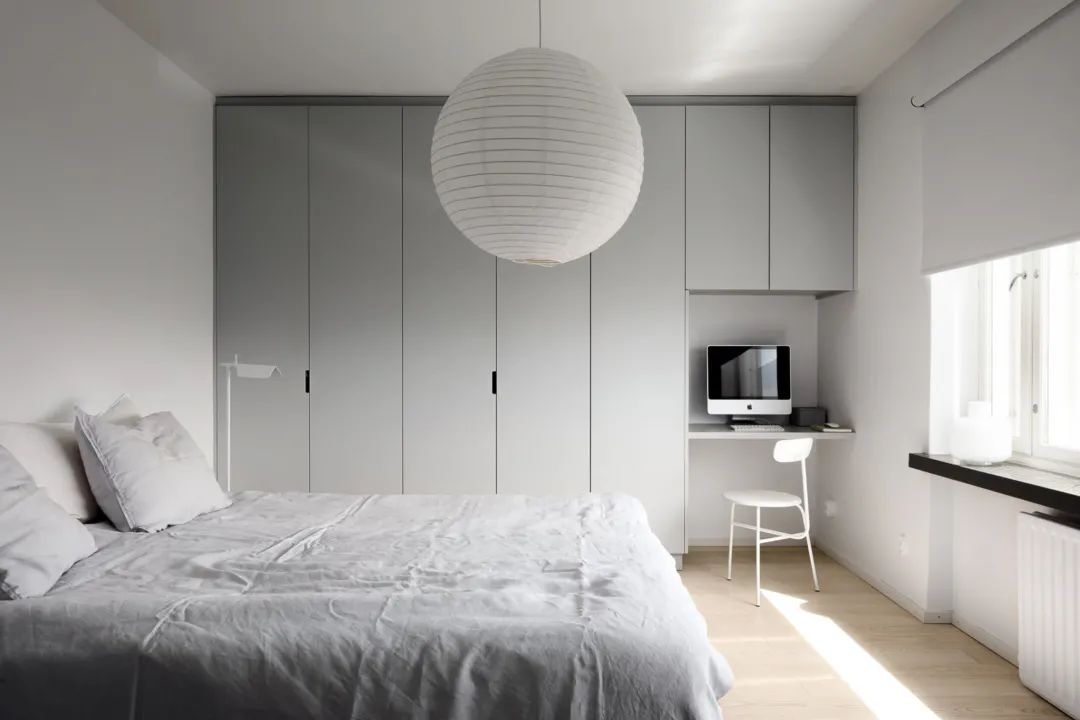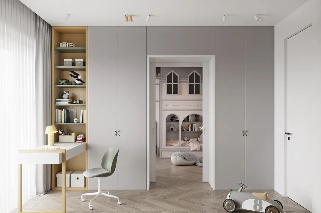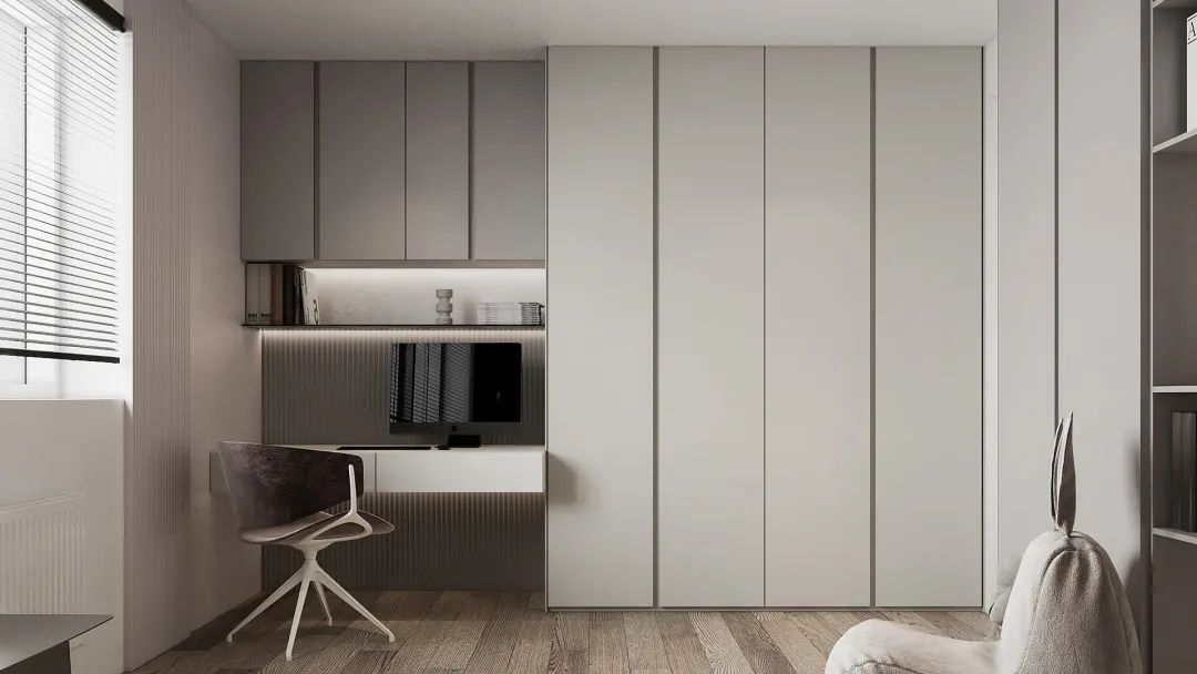 超高柜門,顧名思義,就是柜門做高,它也有另外一個叫法叫做通頂柜門。超高柜門一般都是一塊板從上貫到下,整體流暢,干凈利落。極簡自然的氣質,就是它倍受歡迎的原因。大多數超高柜門都是運用在極簡風格、輕奢風格的空間設計中,可以做無把手,或者豎長把手,或者橫短把手,給人整體美觀、簡潔自然的感覺。