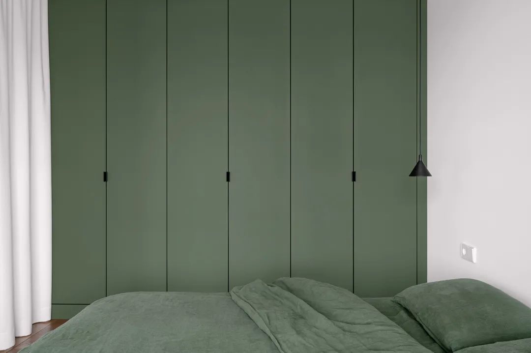 垂拔挺立的超高柜門,除去了把手的多余突兀感,給人的第一感覺更像是抽了縫的墻面,抽縫的線條也賦予了塊面的層次感和流動感,讓整個柜門看上去并不會單調乏味,上下連貫垂拔,左右連續的超高柜門,形成的多層次塊面讓空間的整體性更強。