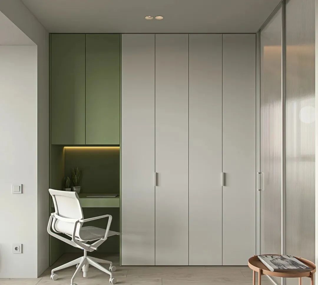 傳統的衣柜柜門板如果要封邊,都是使用的PVC的封邊材料,但是如果超高柜門依然采用PVC封邊條材料,完全是扛不住柜門變形的風險,但經過改良采用鈦合金或者鋁合金的材料,來替代原本的PVC材料封邊,拉手做成通頂式,并且用鋁合金或鈦合金包覆,一般會在拉手之間的縫隙預留出45°左右的斜角,或者預留圓弧兩種拉手的形式方便打開柜門,這樣一來,既完成了封邊,也防止變形,同時拉手還具備超高的顏值,這種方式是較為常見且受歡迎。