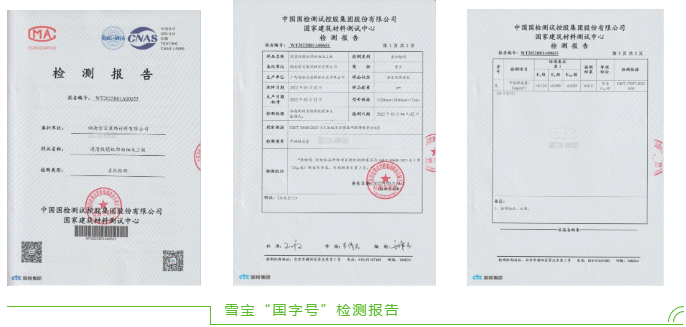 雪寶板材系列產品的甲醛釋放數值遠優于E0級,甚至比新國標ENF級要求的甲醛釋放量≤0.025mg/m³更低。這源于中國國檢測試控股集團的國家建筑材料測試中心檢測出具的檢測報告就是最有力的證明。消費者在購買ENF級板材時,務必認準“國字號”ENF級檢測報告。