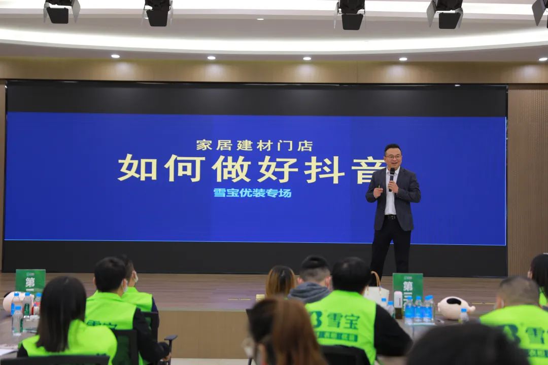 開(kāi)營(yíng)儀式上,雪寶家居集團(tuán)營(yíng)銷副總裁李總致詞,“本次培訓(xùn)的開(kāi)展是基于市場(chǎng)的改變,抖音是我們擴(kuò)寬市場(chǎng)渠道的新方向,如何通過(guò)新渠道來(lái)獲得流量、獲得客源,增加品牌曝光、粉絲量、詢盤(pán)量等都是接下來(lái)的抖音特訓(xùn)營(yíng)里我們要去思考的問(wèn)題,今天的學(xué)習(xí)是一個(gè)新的開(kāi)始,希望大家能將所學(xué)貫徹到今后的門(mén)店經(jīng)營(yíng)中去,實(shí)現(xiàn)新突破。”