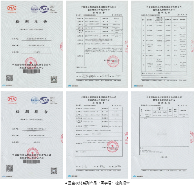 雪寶板材成功獲得中國國檢測試控股集團的國家建筑材料測試中心的出具ENF級檢測報告證書,是對產品環保品質的肯定和信賴。新國標施行后,標注國標ENF的產品是品質的象征,而“國字號”的ENF級檢測證書更是含金量十足,直接受到國家法律的保護和監督。所以,消費者在購買ENF級板材時,認準“國字號”ENF級檢測報告更放心!